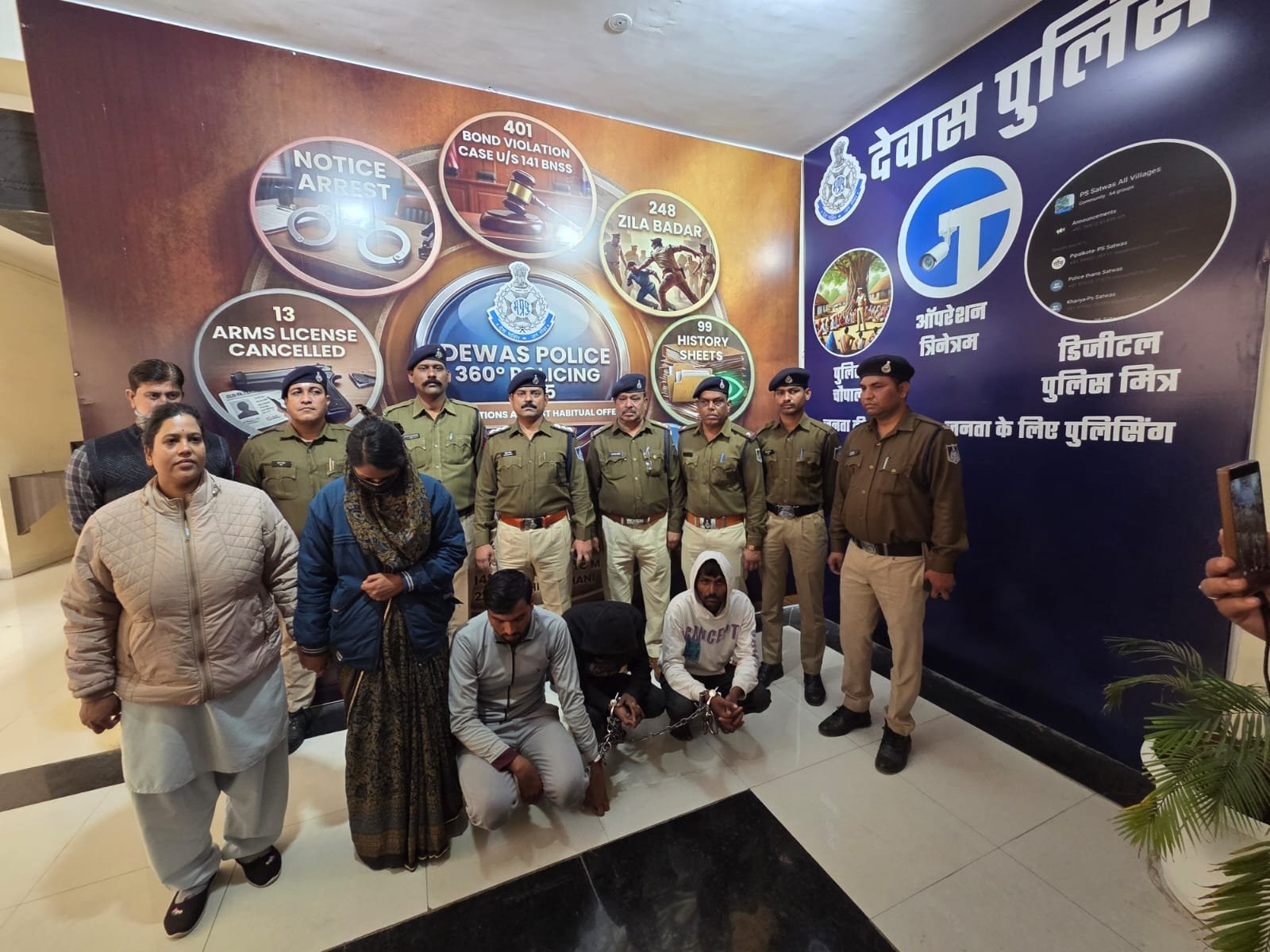 8-9 जनवरी की दरमियानी रात को थाना सिविल लाइन पर सूचना प्राप्त हुई कि नौशराबाद बायपास पशु हाट के पास उज्जैन–देवास बायपास मेन रोड पर एक अज्ञात व्यक्ति की लाश रोड पर पड़ी है. सूचना पर से तत्काल थाना प्रभारी सिविल लाइन मय फोर्स के घटनास्थल पर पहुंचे एवं घटनास्थल का सुक्ष्मता से निरीक्षण कर उक्त घटना से वरिष्ठ अधिकारियों को अवगत कराया. मृतक की पहचान राकेश मालवीय पिता देवीसिंह मालवीय उम्र 42 साल निवासी सांईनाथ कॉलोनी देवास के रूप में हुई। बाद थाना सिविल लाइन पर धारा 194 BNSS का पंजीबद्ध कर जांच प्रारंभ कर मृतक के शव को पी.एम. हेतु जिला अस्पताल देवास भेजा गया. पी.एम. रिपोर्ट की प्राप्ति उपरान्त मर्ग जांच पर से थाना सिविल लाइन पर अपराध धारा 103(1) BNS का अपराध पंजीबद्ध कर विवेचना में लिया गया. उक्त घटना की गंभीरता को देखते हुए थाना प्रभारी सिविल लाइन निरीक्षक हितेश पाटिल के नेतृत्व में विशेष पुलिस टीम गठित की गई. पुलिस टीम द्वारा तकनीकी साक्ष्य,भौतिक साक्ष्य एवं मुखबिर तंत्र सक्रिय कर घटनास्थल के आस-पास के सीसीटीव्ही कैमरा चैक किए गए,जिनमें आरोपियों द्वारा घटना कारित करने उपरान्त भागना कैद हुआ। विश्वसनीय मुखबिर सूचना एवं सीसीटीव्ही फुटैज के आधार पर संदेही मृतक की पत्नी से प्रारंभिक पूछताछ में मृतक की पत्नी के द्वारा अपने साथी देवेन्द्र एवं अन्य 02 लोगों के साथ पति की हत्या की साजिश रचकर घटना को अंजाम देना स्वीकार किया गया. तत्पश्चात विश्वसनीय मुखबिर सूचना के आधार पर से घटना में शामिल अन्य तीनों आरोपियो को गिरफ्तार कर अग्रिम वैधानिक कार्यवाही की जा रही है।